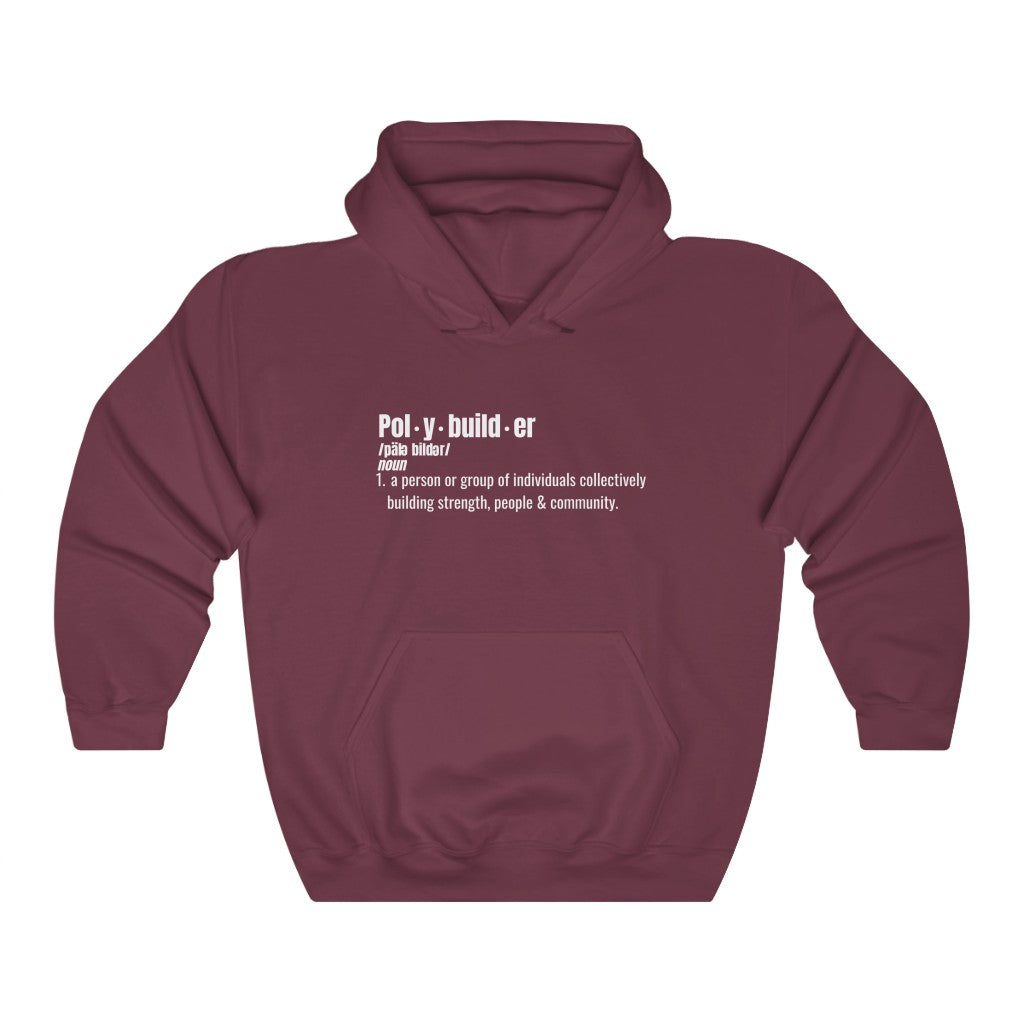 A unisex heavy blend hooded sweatshirt is relaxation itself. The material is a thick blend of cotton and polyester. This makes for a plush, soft feel alongside warmth. There are no side seams. A spacious kangaroo pocket hangs in front. The hood's drawstring is the same color as the base sweater.